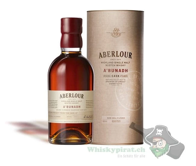 Beim Aberlour a’Bunadh handelt es sich um einen Single Malt Whisky aus der Speyside. Die Reifung erfolgte ausschliesslich in spanischen Oloroso-Sherry-Fässern für rund 10-15 Jahre. Die Abfüllung erfolgte in Fassstärke nicht kühlgefiltert und nicht eingefärbt. Das macht ihn zum ursprünglichsten Aberlour.