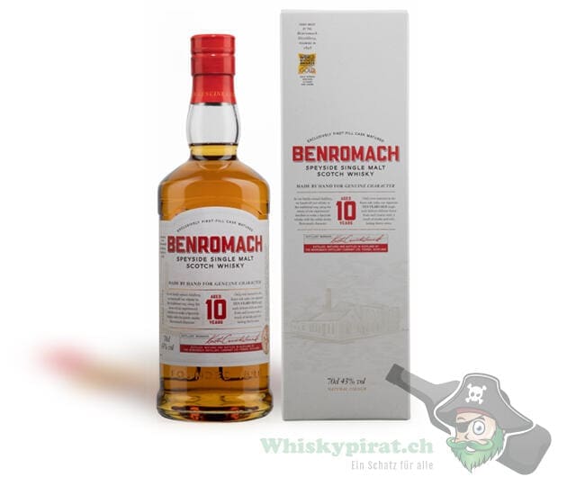 Beim Benromach (10 Jahre) handelt es sich um einen Speyside Single Malt Whisky der für 10 Jahre in Bourbon- und Sherryfässern lagerte. Die Abfüllung erfolgte nicht eingefärbt. Wird seit 2020 in einem neuen Design hergestellt.