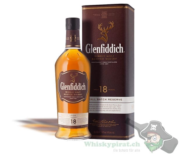 Beim Glenfiddich 18 Jahre (Small Batch) handelt es sich um einen Speyside Single Malt der in Oloroso Sherry und Bourbon Fässern reifte. Dabei wurden jeweils 150 Fässer ausgewählt, die dann für 3 Monate in großen Holzbottichen nachreifen und als Batch abgefüllt werden. Daher variieren die Abfüllungen geschmacklich leicht. Die Abfüllung erfolgte nicht kühlgefiltert.