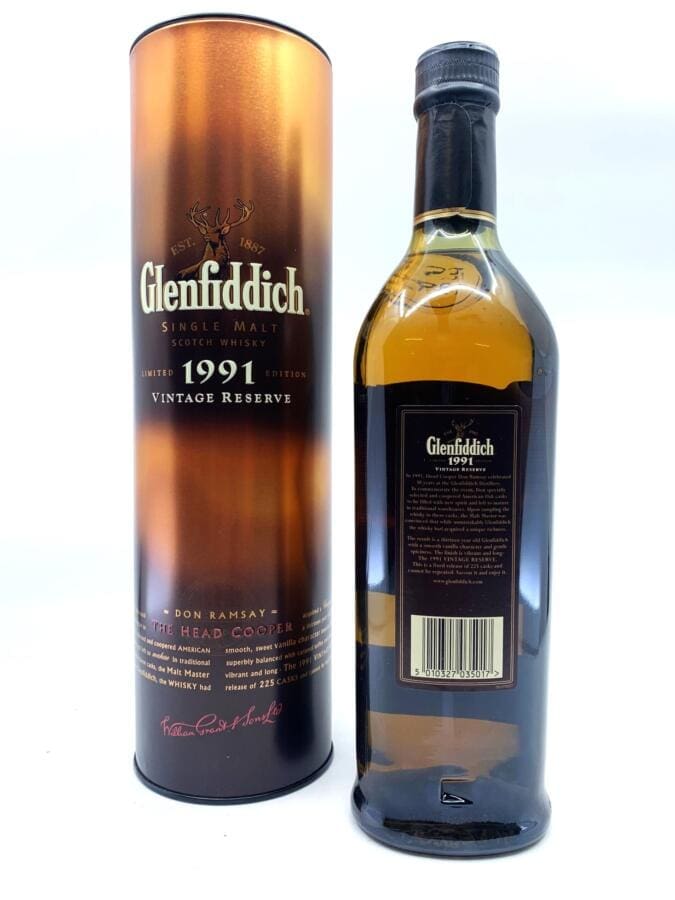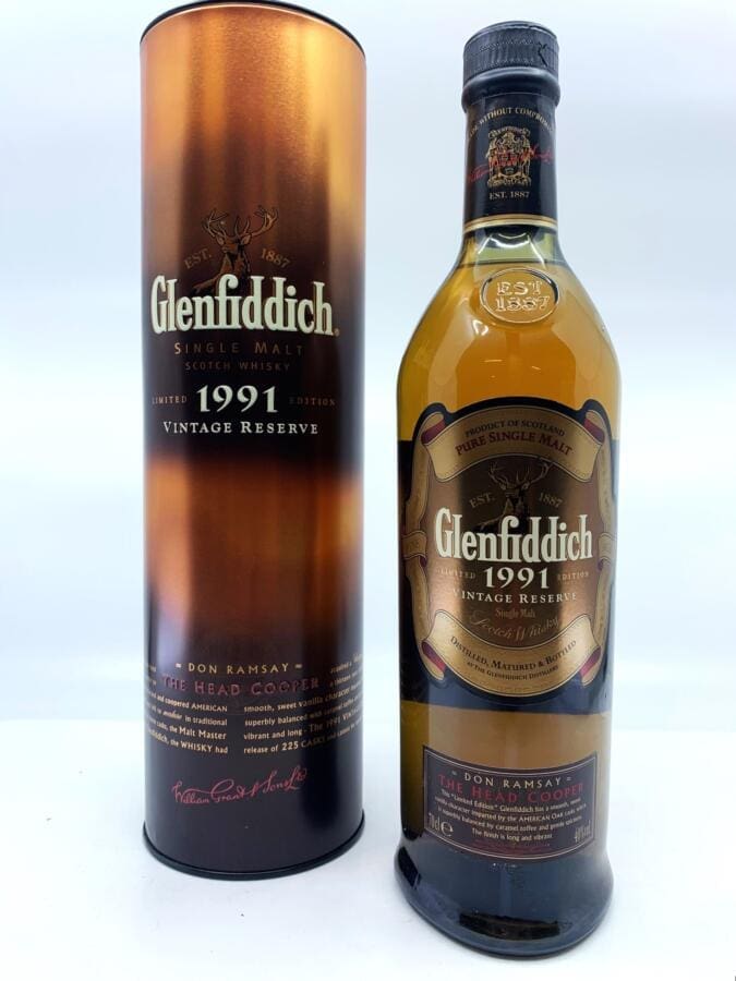 Eine der selten erhältlichen Jahrgangsabfüllungen von Glenfiddich zu ehren des 30-Jahr-Jubiläums in der Destillerie des Head Coopers „Don Ramsay“.