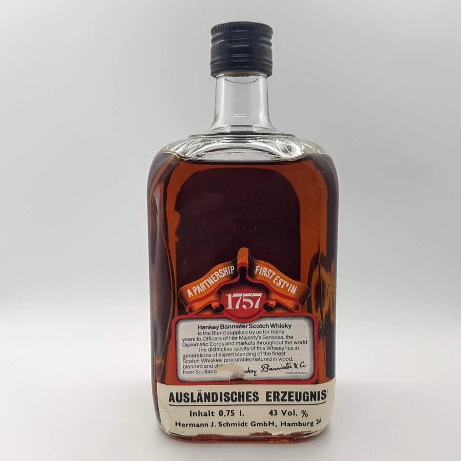 Blended Scotch Whisky Abfüllung von Hankey Bannister mit altem Label. Dieser Blend enthält Whisky die mindestens 12 Jahre alt sind.