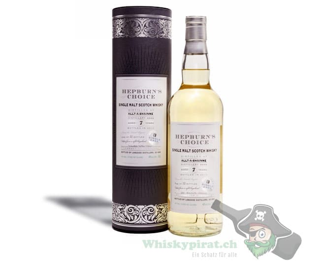 Beim Hepburn’s Choice Allt A Bhaine (7 Jahre – 2008) handelt es sich um einen Vintage Single Malt Whisky von der Allt A Bhaine Destillerie aus der Speyside. Er wurde im Jahr 2008 destilliert und reifte anschliessend für 7 Jahre in einem Refill Hogshead Einzelfass. Die Abfüllung erfolgte 2016 nicht kühlgefiltert und nicht eingefärbt in 300 Flaschen.