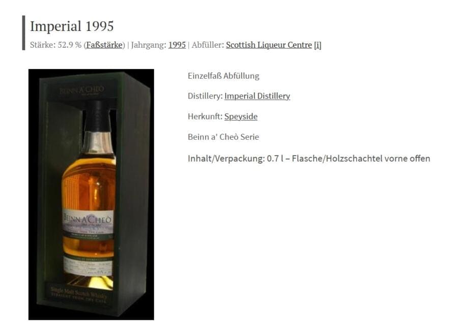 Imperial (18 Jahre – 1995) Scottish Liqueur Centre