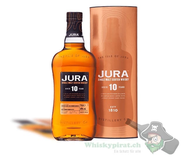Beim Jura (10 Jahre) handelt es sich um einen Single Malt Whisky von den Inseln in einer Neuerscheinung. Er lagerte für 10 Jahre in Ex-Bourbon Fässern aus Weißeiche und erhielt eine Nachreifung in Oloroso-Sherry Fässern aus Jerez, Spanien. Wie gemacht für den modernen Trinker der die sanft, rauchige Sherry Süße liebt.