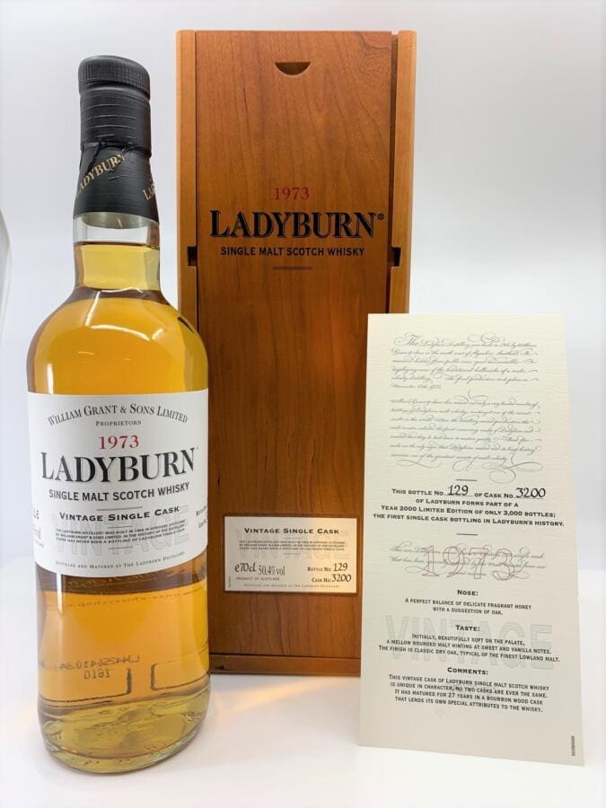 Ladyburn war lediglich von 1966 bis 1975 in Betrieb und wurde 1976 abgerissen. Deshalb und aufgrund der längst äusserst rar gewordenen Bestände ein begehrtes Sammlerstück. Aber auch für Geniesser sind Bottlings von dieser Lowland Destillierie allemal für äusserst spannende Genussmomente gut.