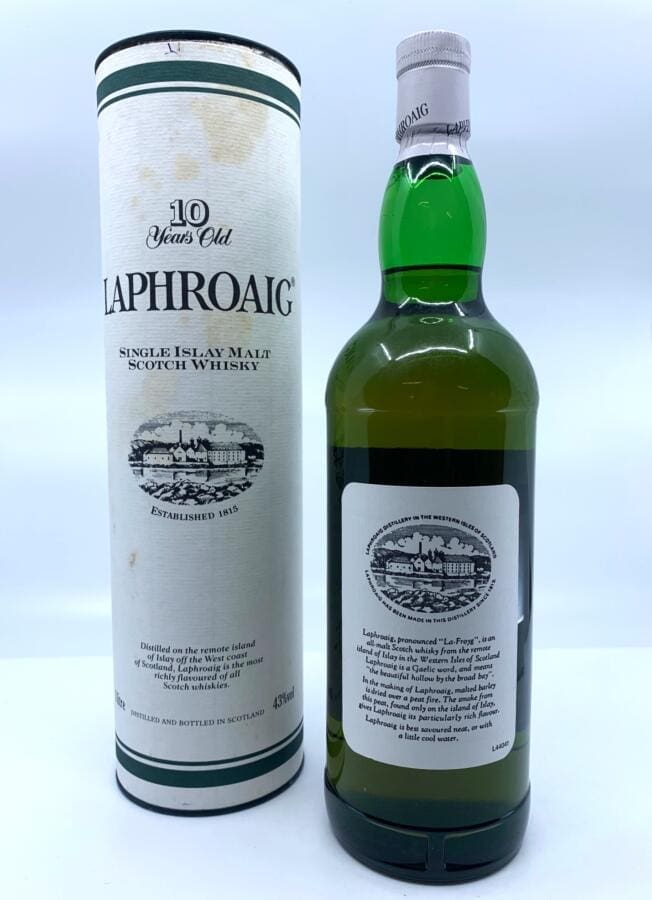 Hierbei handelt es sich um ein ältere Abfüllung von Laphroaig, die auf dem Label den Royal Warrant noch nicht trägt. Der Royal Warrant ist die „Auszeichnung“ für einen Hoflieferanten des Britischen Königshauses. Prinz Charles vergab diesen Titel an die Laphroaig Distillery im Jahre 1994. Die Flasche wurde also vorher, schätzungsweise zwischen 1990 und 1994 abgefüllt. Zudem handelt es sich hier um eine eher seltene 1-Liter-Flasche. Laphroaigs aus dieser Zeit werden gerne mit lobenden Worten überhäuft.