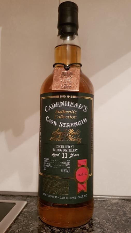 Schottischer Single Malt Ledaig 11 Jahre – Bottler Cadenhead, Bottling serie Authentic Collection.