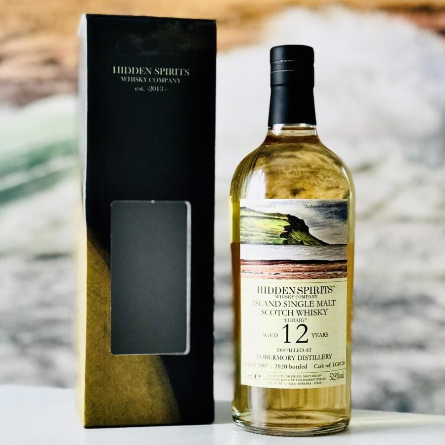 Bei diesem Ledaig (12 Jahre – 2007) Hidden Spirits handelt es sich um einen Single Malt aus der Tobermory Destillerie. Er wurde 2007 destilliert und lagerte anschliessend für 12 Jahre in einem Refill Hogshead. Die Abfüllung in 310 Flaschen erfolgte 2020 durch den italienischen Abfüller Hidden Spirits in Ferrara, der seit 2013 jährlich eine sehr kleine, aber sorgfältig ausgewählte Auswahl an Whiskys auf den Markt bringt.