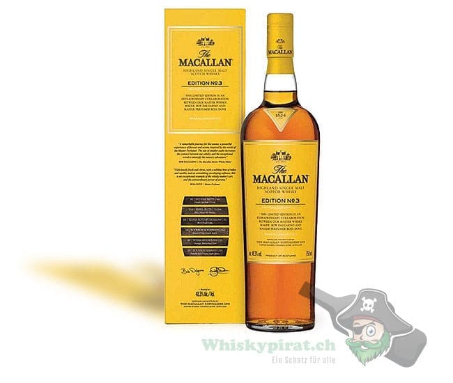 Beim Macallan Edition No. 3 handelt es sich um einen Speyside Single Malt Whisky in der 3. Ausgabe der Edition-Serie von Macallan. Er lagerte in amerikanischen Eichenfässern. Die Abfüllung erfolgte im Jahr 2017 in limitierter Ausgabe mit kräftigen 48.3% Volumen.