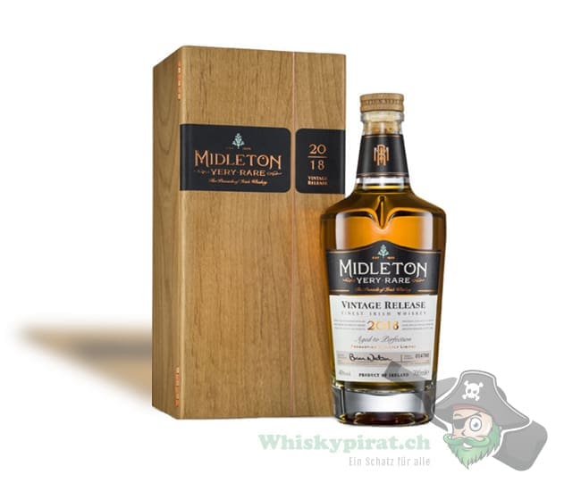 Beim Midleton Very Rare (2018) handelt es sich um einen 3-fach destillierten irischen Whiskey der in einer jährlich limitierten Auflage von seltenen Fässern herausgegeben wird. Dabei werden die besten Fässer (First Fill und Refill Bourbon Fässer) welche Single Pot Still und Single Grain Whiskey beinhalten ausgewählt, die im Resultat einen hervorragenden Blend aus 12 – 32 Jahre alten Whiskeys entstehen lassen.
