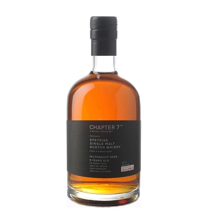 Beim Miltonduff (6 Jahre – 2008) – Chapter 7 handelt es sich um einen Vintage Single Malt Whisky aus der Speyside. Er wurde 2008 destilliert und reifte anschliessend für 6 Jahre in einem Ex-Sherry Butt. Die Abfüllung erfolgte durch Chapter 7 in Fassstärke im 2015 mit 663 Flaschen, nicht kühlfiltriert und ohne zusätzlichen Farbstoffe.
