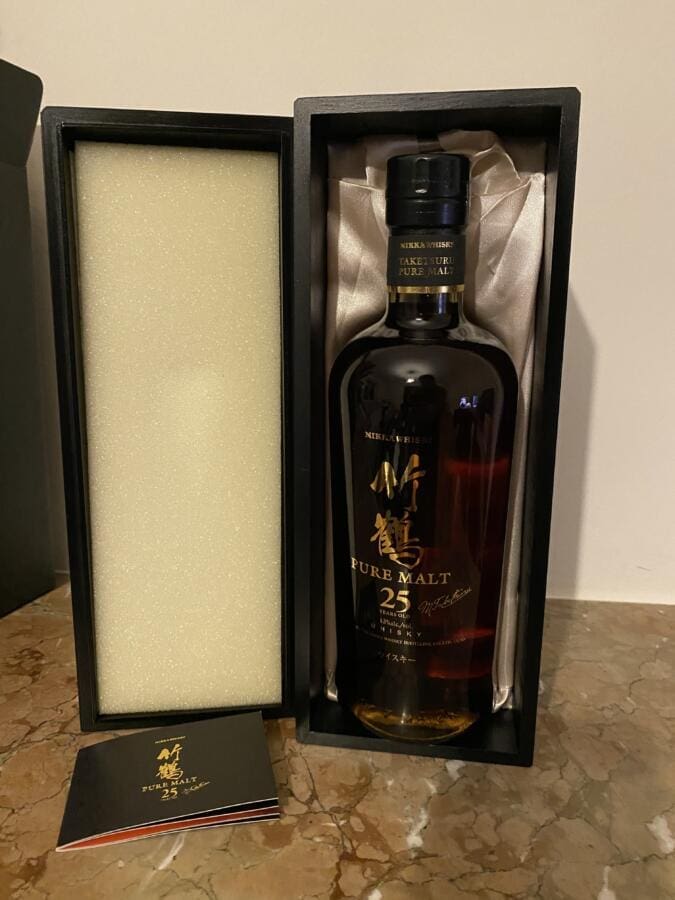 Der Nikka Taketsuru (25 Jahre) wurde erstmals 2012 in Japan eingeführt mit nur 120 Flaschen für ganz Europa. Er besteht aus mindestens 25 Jahre gereiften Malts aus den Brennereien Yoichi und Miyagikyo und ist süß und reichhaltig mit einem Hauch von Sherry und Torf. Er wurde zusammen mit den 17-jährigen und 21-jährigen Abfüllungen im Jahr 2020 eingestellt, nachdem die Nachfrage nach japanischem Whisky so groß war wie nie zuvor.