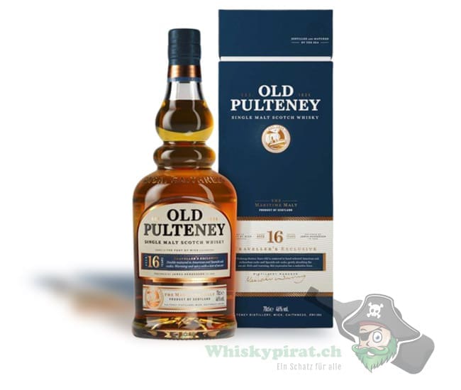 Beim Old Pulteney (16 Jahre) handelt es sich um einen rauchigen Single Malt Whisky aus den Highlands. Er lagerte für 16 Jahre in amerikanischen und spanischen Weißeichenfässern.