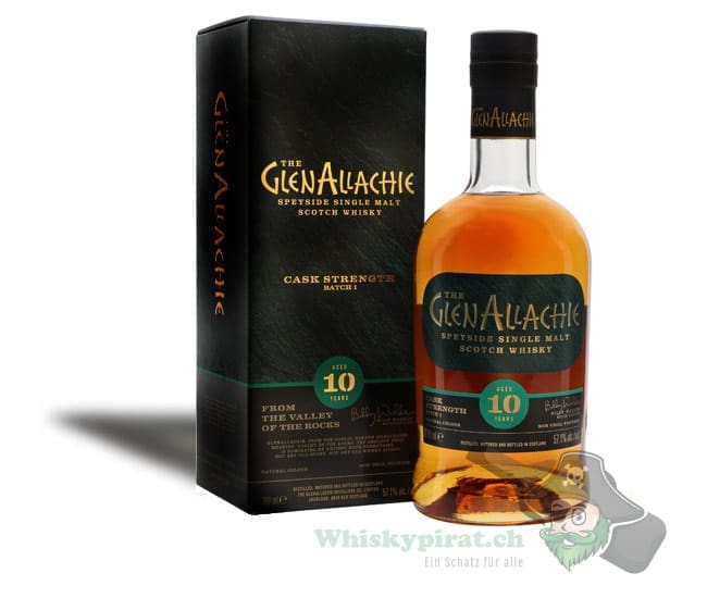 Beim GlenAllachie (10 Jahre) Cask Strength handelt es sich um einen Single Malt Whisky von der Glenallachie Destillerie, dieser gehört seit 2018 zum neuen Standard-Sortiment der Brennerei. Die 10-jährige Reifung erfolgte in ehemaligen PX Sherryfässern, Oloroso Sherryfässern und frischen „Virgin“ Eichenfässern. Die Abfüllung erfolgte in Fassstärke, nicht kühlgefiltert und nicht eingefärbt.