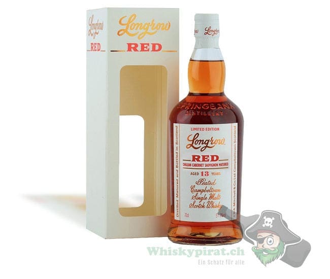 Beim Longrow Red (13 Jahre) Chilean Cabernet Sauvignon handelt es sich um einen Single Malt Whisky aus der Springbank Destillerie. Er lagerte zuerst für 10 Jahre in ehemaligen Bourbonfässern und Sherryfässern. Anschliessend folgte eine Nachreifung von 3 Jahren in Cabernet Sauvignon Fässer des Weinguts MontGras‘ Intriga Estate in Alto Maipo, Chile . Die Abfüllung erfolgte 2020 in Fassstärke nicht kühlgefiltert und nicht eingefärbt mit einer limitierten Stückzahl von 9’000 Flaschen.