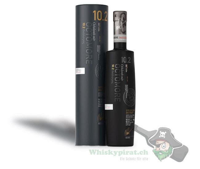 Beim Octomore Edition 10.2 handelt es sich um einen stark rauchigen Single Malt Whisky aus der Brennerei Bruichladdich. Dieser Octomore wurde im Jahr 2010 aus Schottischer Gerste (Optic & Oxbridge) destilliert, anschliessend reifte er für 8 Jahre. Die ersten 4 Jahre verbrachte er in First-Fill Bourbonfässern, anschliessend folgte für 4 Jahre eine Lagerung in ehemaligen Sauternes-Fässern. Er weist einen Phenolgehalt von 96.9 ppm auf. Die Abfüllung erfolgte im 2019 in Fassstärke, nicht kühlgefiltert und nicht eingefärbt mit einer limitierten Ausgabe von 24’000 Flaschen. Ausschliessliche für den Reisehandel bestimmt.