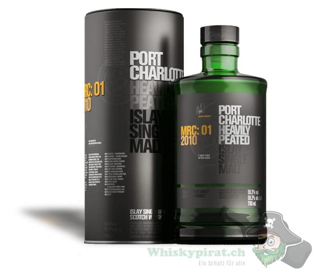 Beim Port Charlotte MRC:01 – 2010 handelt es sich um einen rauchigen Single Malt Whisky aus Islay mit 40ppm. Er wurde 2010 aus 100% schottischer Gerste der Region Invernesshire destilliert. Anschliessend lagerte 50% der insgesammt 200 Fässer in amerikanischen Whiskeyfässern und die anderen 50% in französischen Weinfässern für rund 6 Jahre. Es folgte eine 1-jährige Nachreifung in feinster französischer Eiche vom linken Ufer von Bordeaux. Die Abfüllung in Fassstärke im Jahr 2018 erfolgte in limitierter Auflage von 8’000 Flaschen nicht kühlgefiltert und nicht eingefärbt.